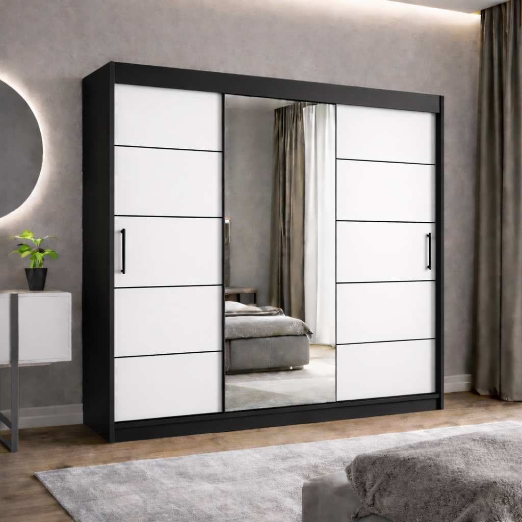 Szafa przesuwna RIO-3 180 BIAŁY/CZARNY
