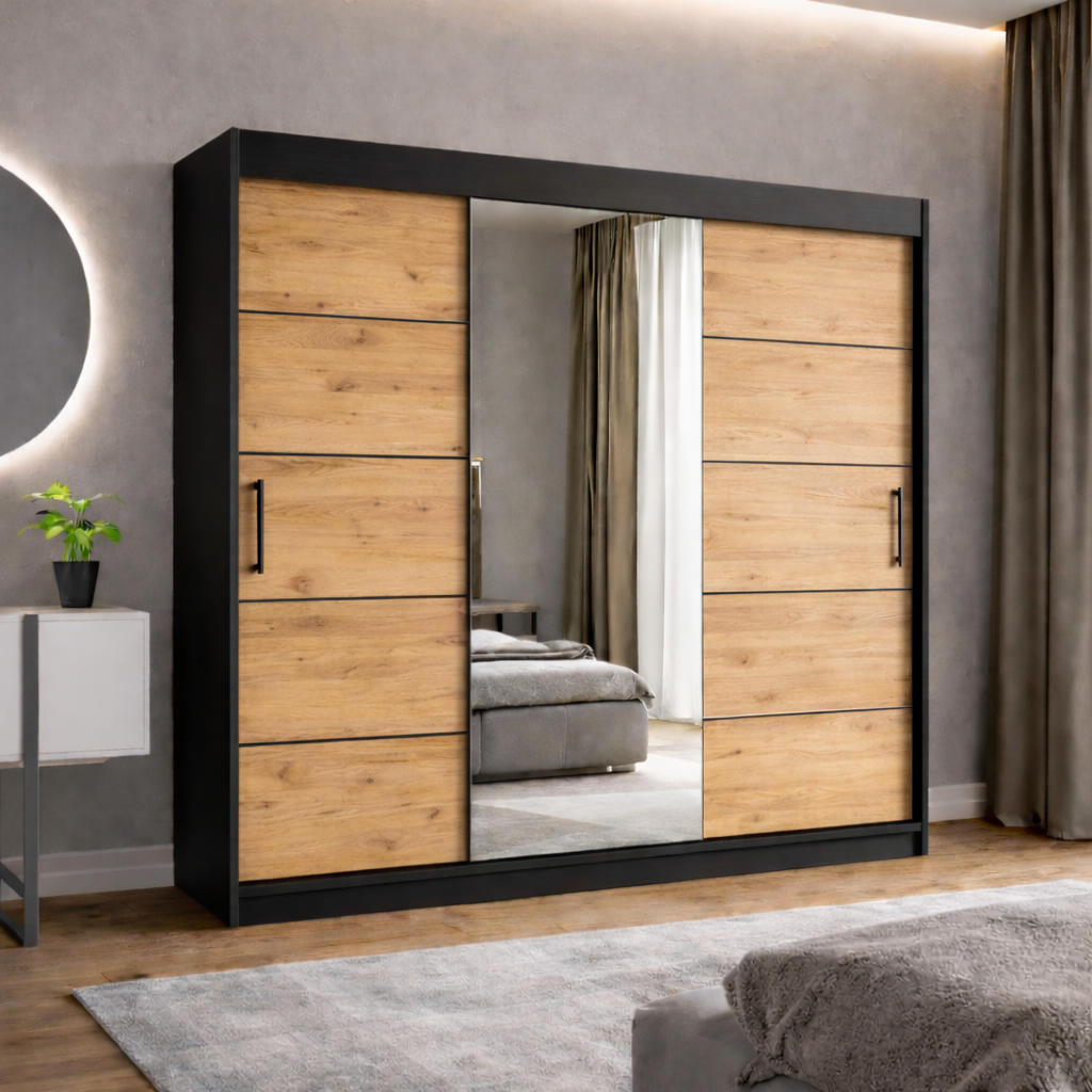 Szafa przesuwna RIO-3 180 DĄB ARTISAN / CZARNY