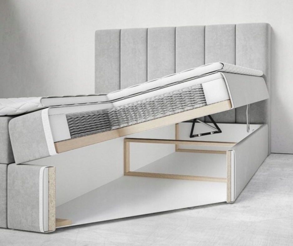 Zaletą tego modelu łóżka jest podzielony pojemnik na pościel. Dzięki temu rozwiązaniu nie trzeba podnosić całego łóżka aby schować pościel. Do tego zyskujemy dodatkową przestrzeń, aby schować w pojemniku inne przedmioty.