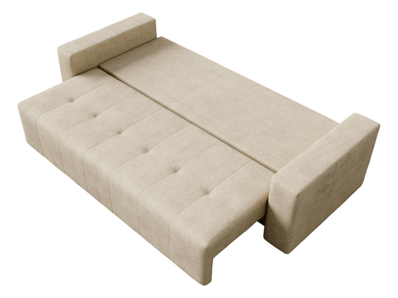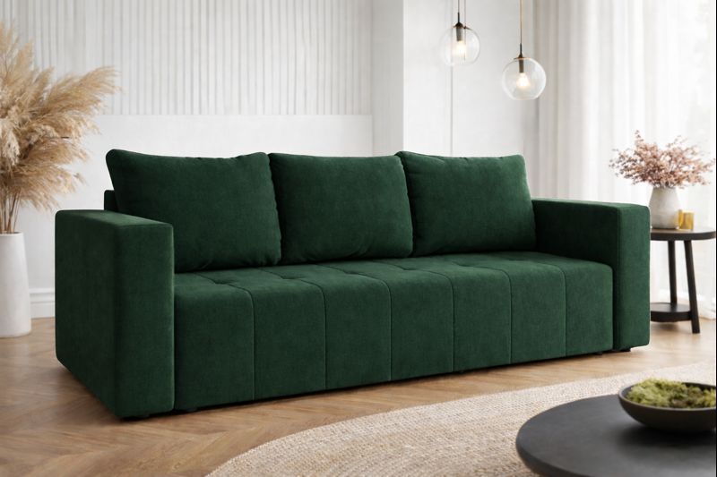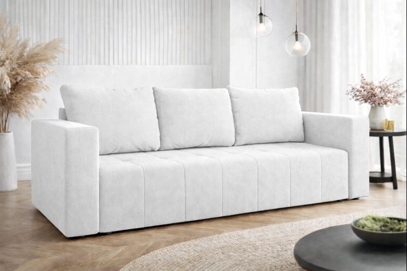 MADERA to nowoczesna, wygodna kanapa rozkładana, która świetnie sprawdzi się zarówno w salonie, jak i w mieszkaniu, gdzie liczy się funkcjonalność. Minimalistyczna forma, szerokie podłokietniki i miękkie, ruchome poduchy oparciowe tworzą komfortową strefę relaksu na co dzień, a dzięki funkcji spania łatwo zamienisz ją w praktyczne łóżko dla domowników lub gości.