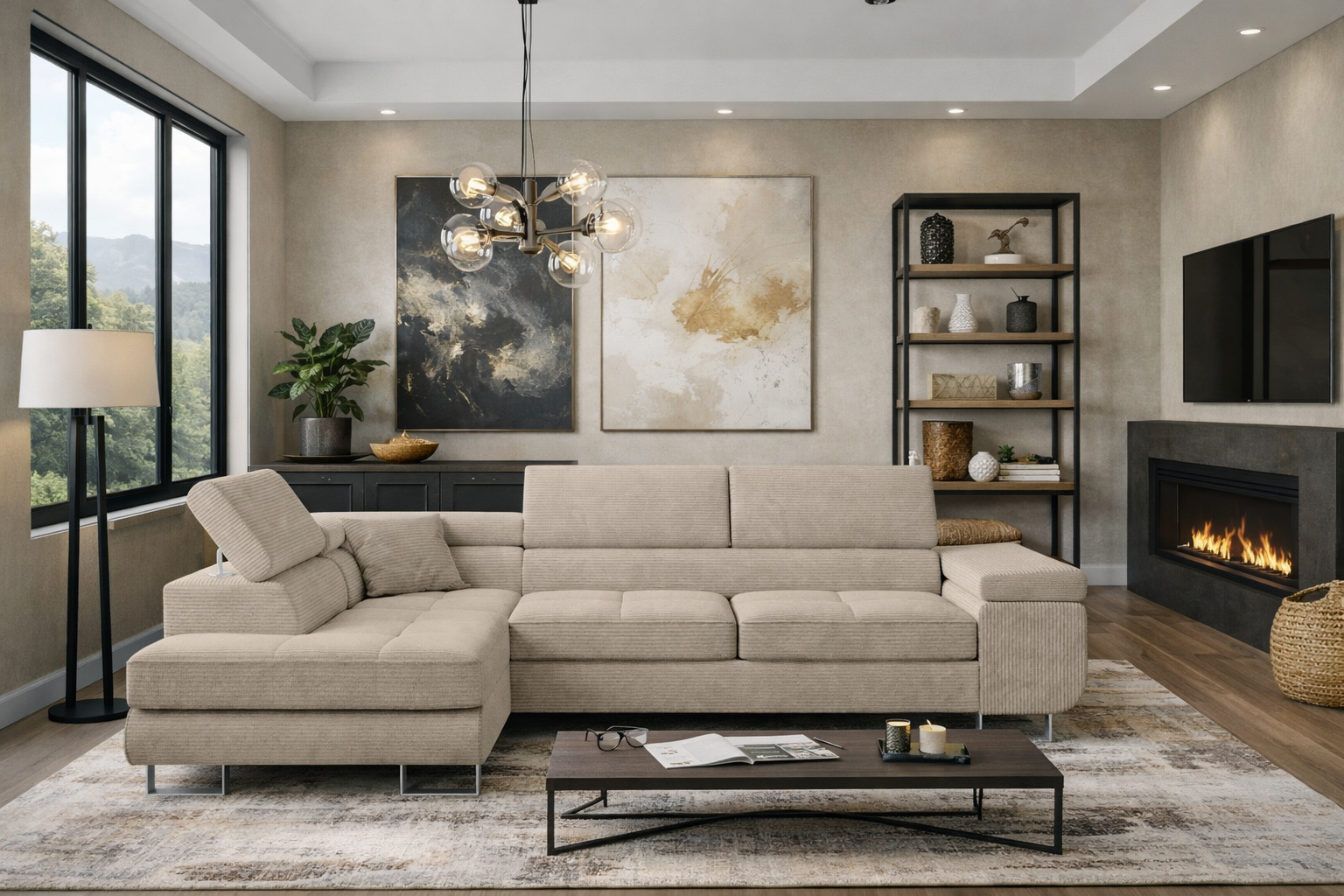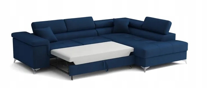 Rozkładany narożnik ALVARO z pojemnikiem na pościel oraz funkcją spania, tworzy idealny mebel do twojego salonu albo sypialni. Regulowane zagłówki pomogą Ci idealnie dopasować wysokość oparcia. Odkryj harmonię między stylem a praktycznością dzięki narożnikowi ALVARO!
