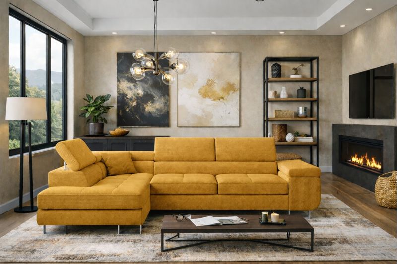 -tapicerowany tył mebla — możesz ustawić narożnik w dowolnym miejscu w salonie