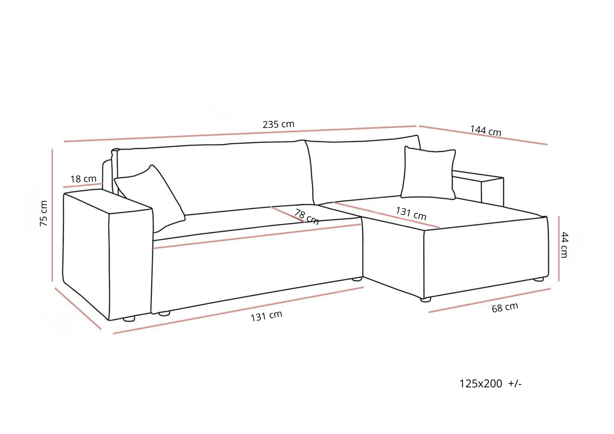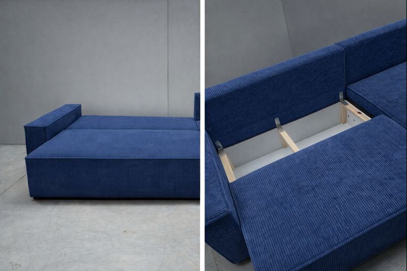 Rozkładany narożnik EDEN z pojemnikiem na pościel oraz funkcją spania, tworzy idealny mebel do twojego salonu albo sypialni.