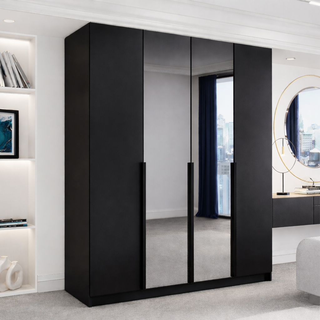 Pojemna szafa 4-drzwiowa LIZA 200 cm z systemem drzwi uchylnych.